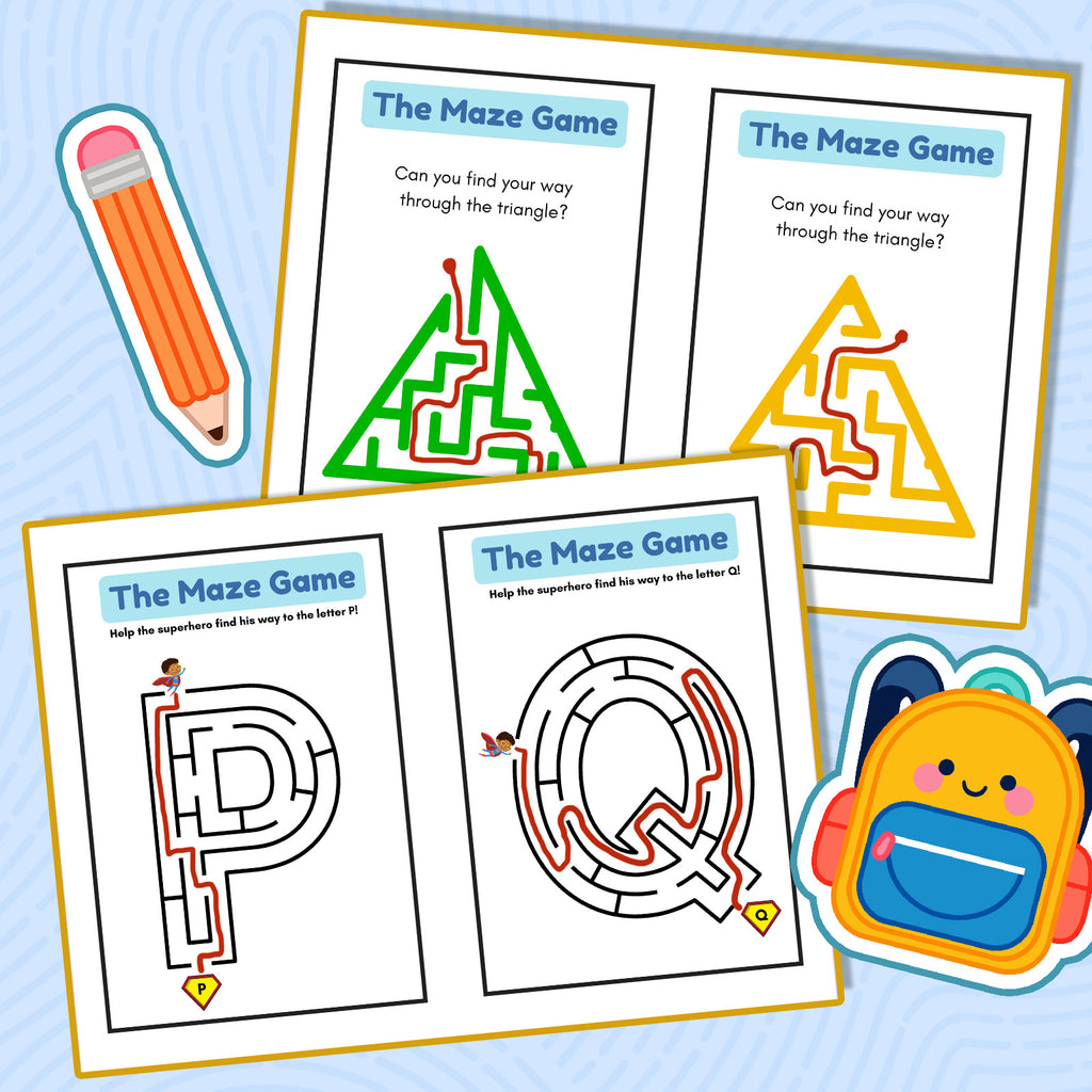 Alphabet and Shape Maze Adventure Book Set for Kids, Early Learning Maze Activity Bundle for Letter Recognition, Shape Skills, Pencil Control, Visual Thinking, and Preschool Fun
