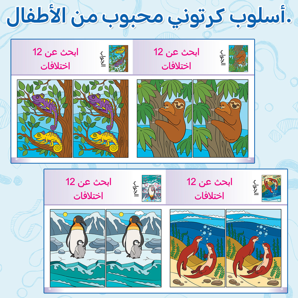 🐘 An Arabic children’s activity book packed with animal-themed difference games, colorful illustrations, and playful challenges that make every page exciting 📘✨