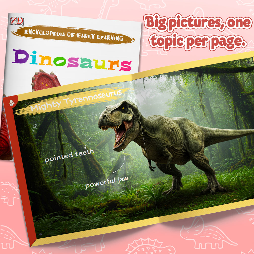 📚 Builds Early Dinosaur and Word Recognition – Supports young learners as they identify dinosaurs, connect pictures with words, and grow more confident with first vocabulary. 📚