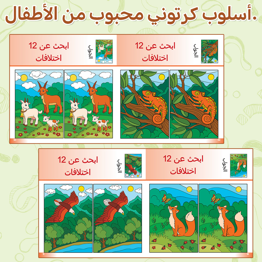 Discover the Differences Challenge, Arabic Children’s Activity Book with Animal Observation Games, Visual Search Practice, Focus Training, and Fun Early Learning