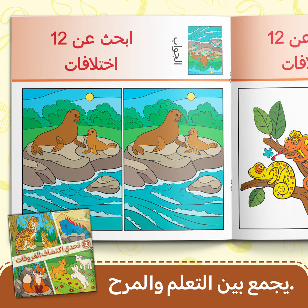 🦁 An Arabic children’s activity book filled with animal-themed difference games, bright illustrated scenes, and playful challenges that make learning feel exciting and interactive 📘✨