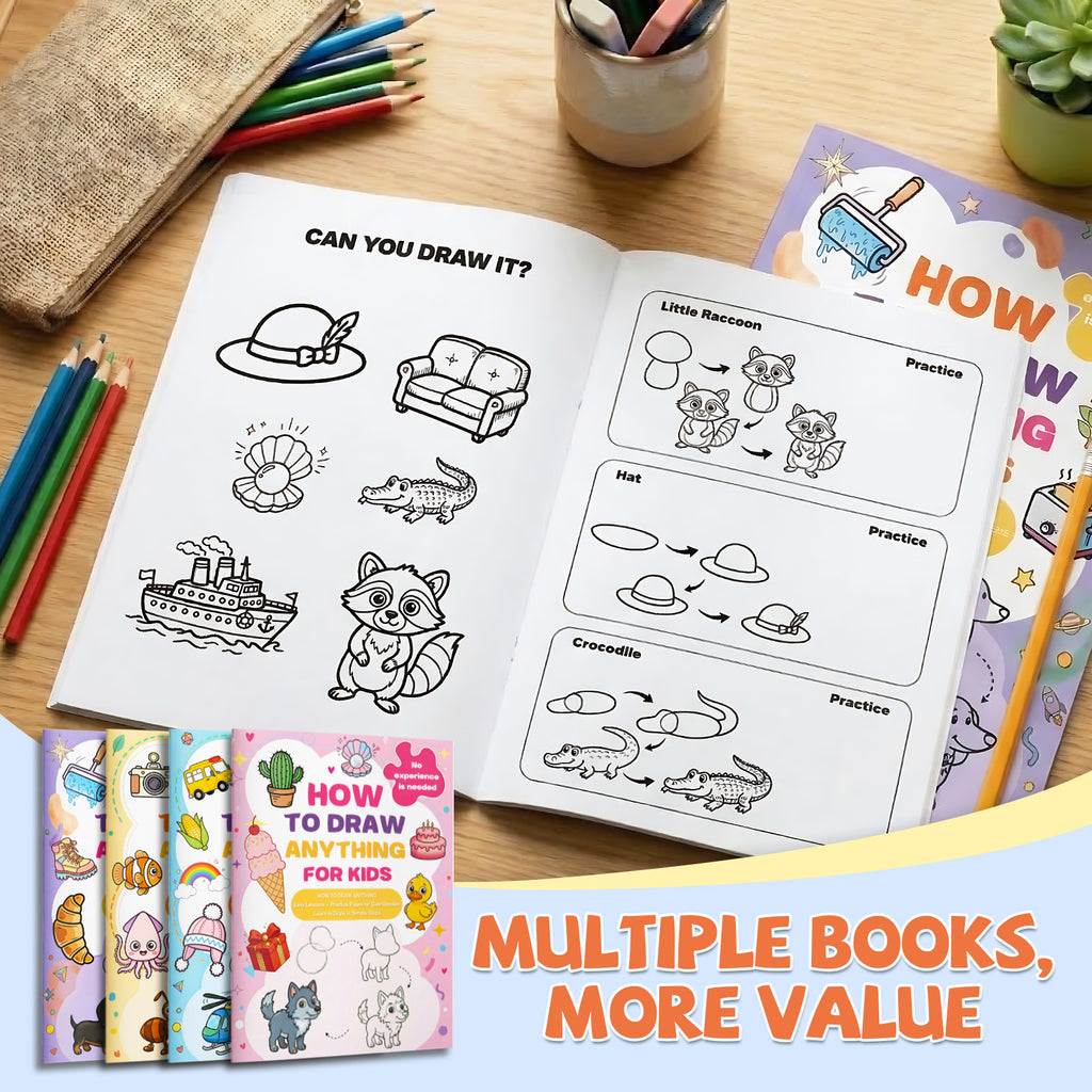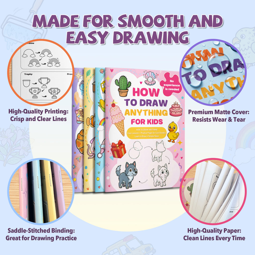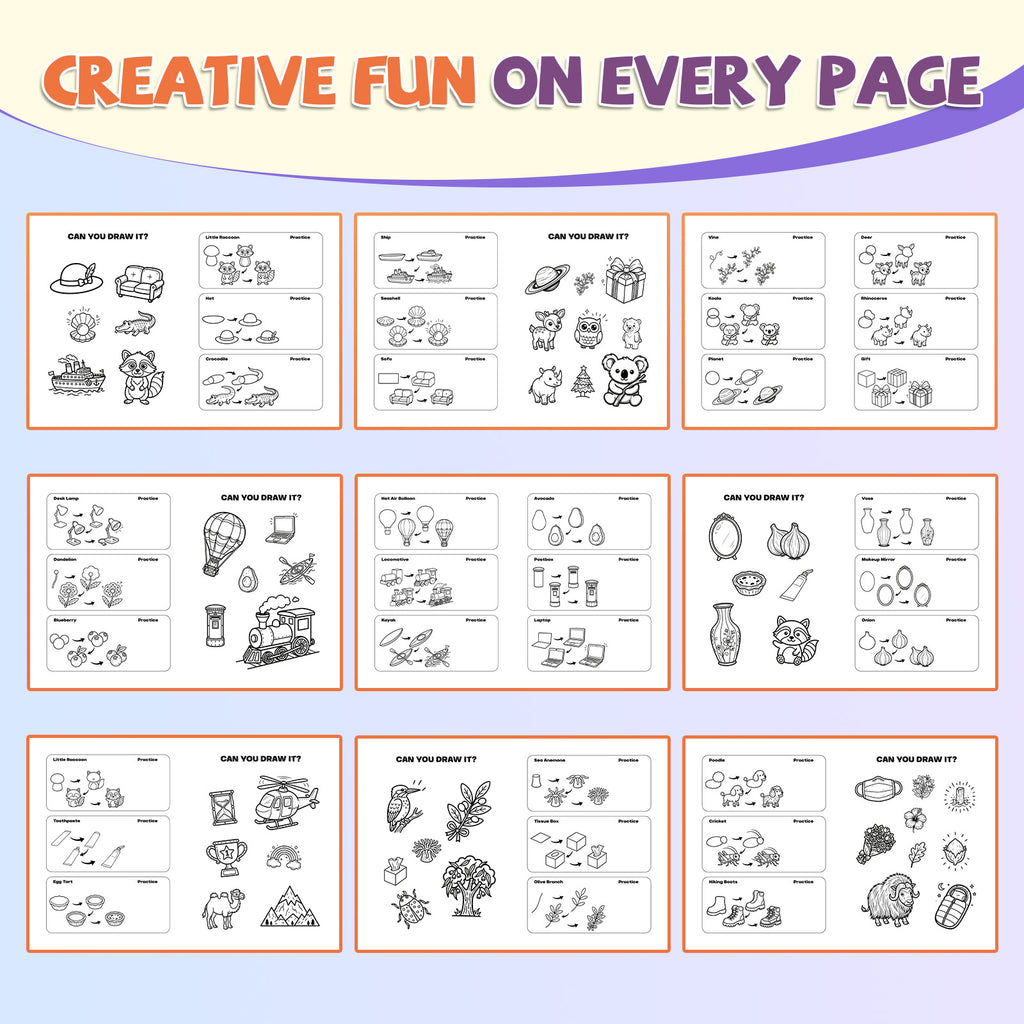 🧸 Each book brings a new drawing adventure, from cute animals and playful objects to everyday doodles that make art time feel light, happy, and exciting.
