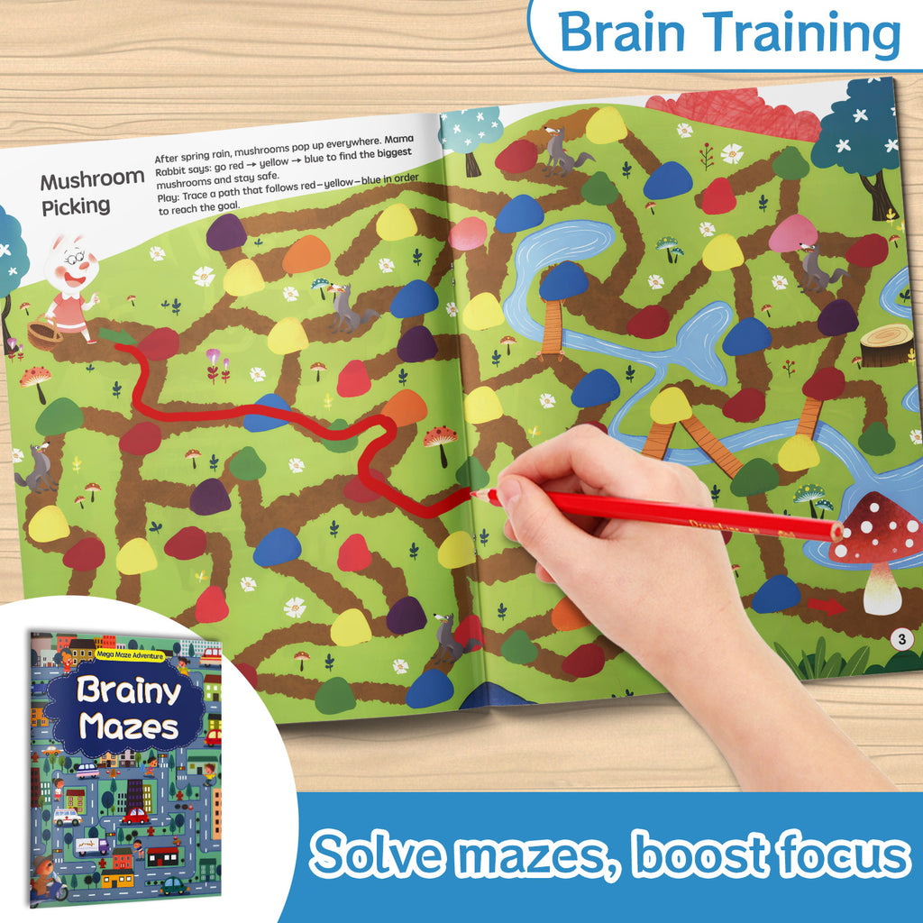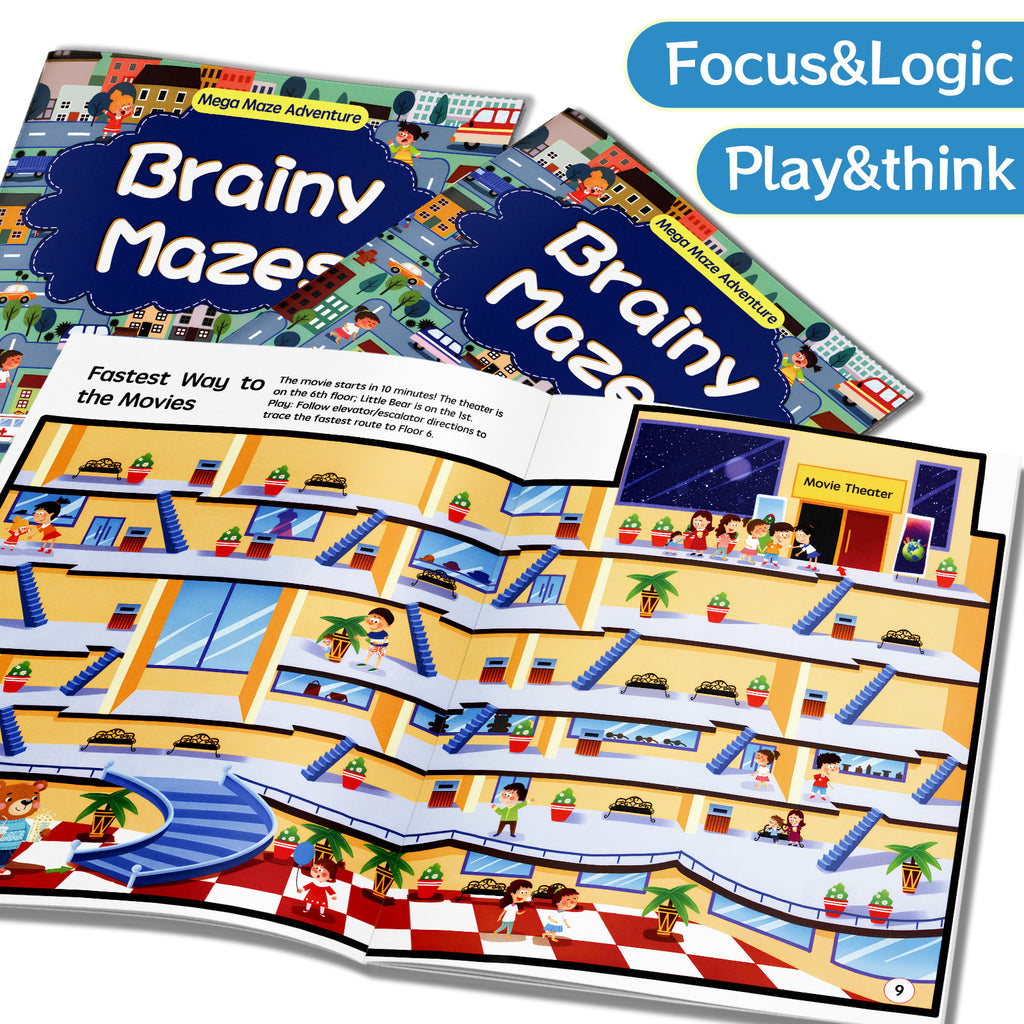 Kids Maze Activity Book, Brainy Mazes, Children’s Puzzle Adventure Book for Problem-Solving, Focus, and Visual Thinking Skills