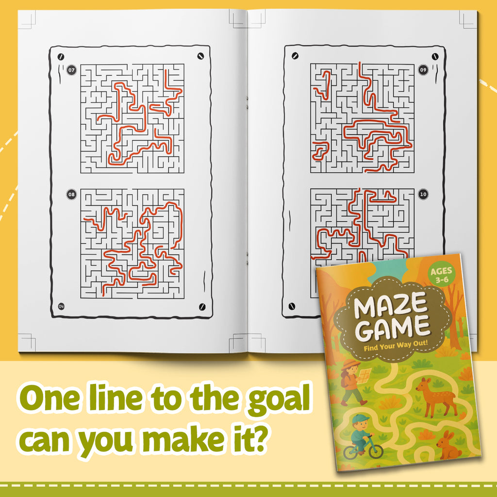 Maze Game, Find Your Way Out Activity Book for Kids Ages 3โ6, Early Learning Maze Puzzle Book with Pathfinding Fun, Problem Solving, Visual Thinking, and Preschool Skill Building